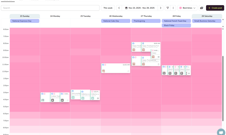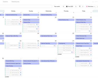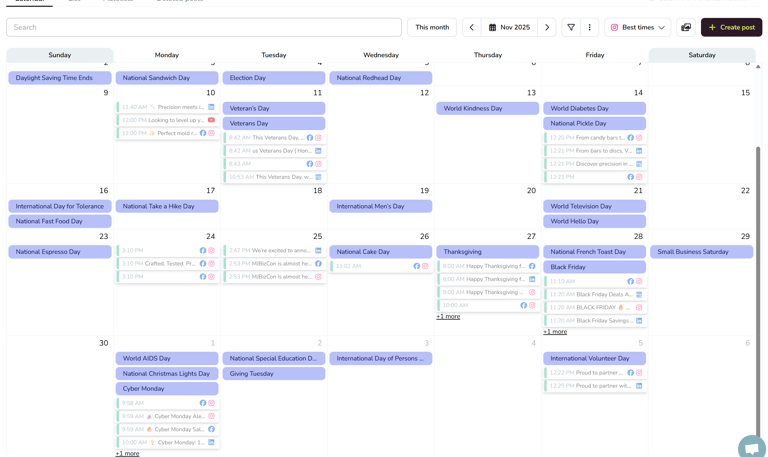 A clear month snapshot that shows all your posts, holidays, and campaigns mapped out at a glance.